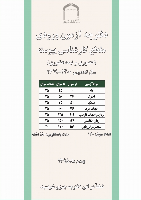 دفترچه آزمون کارشناسی 1400-1399